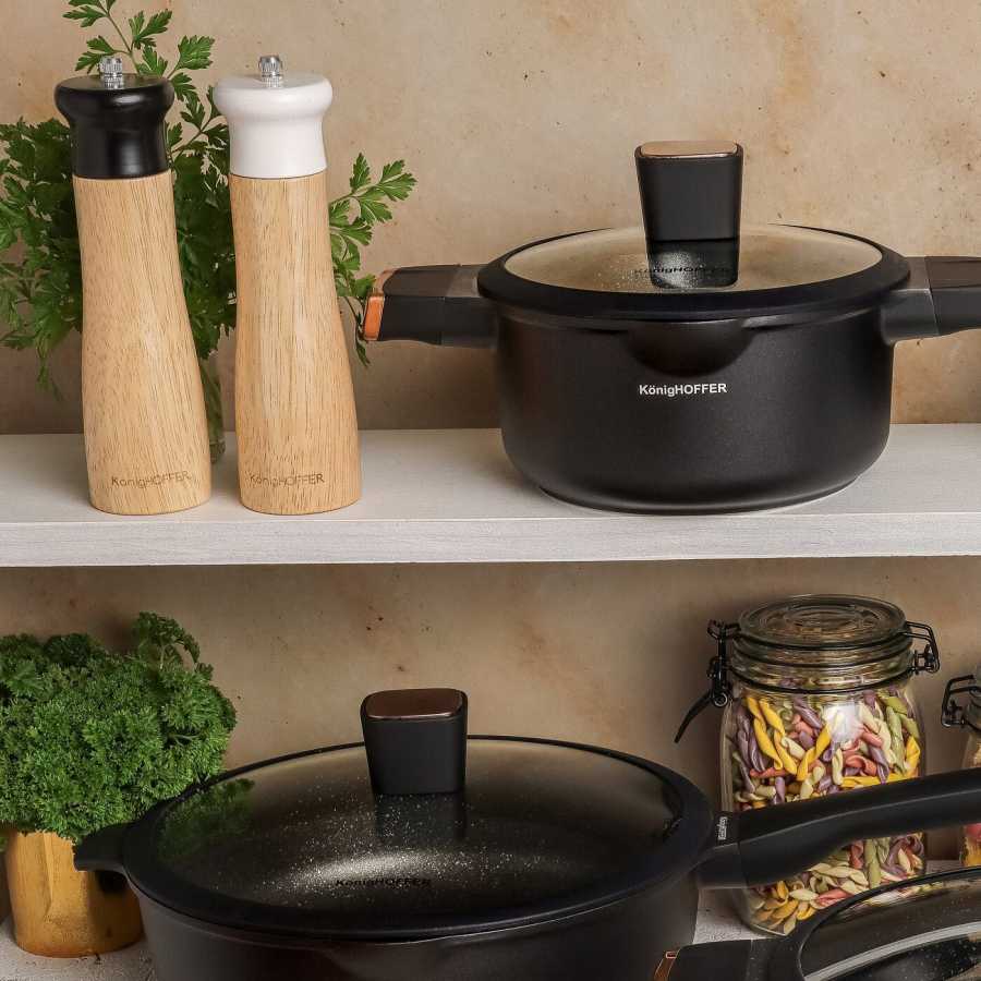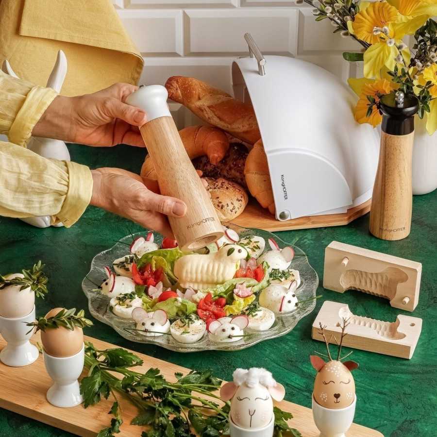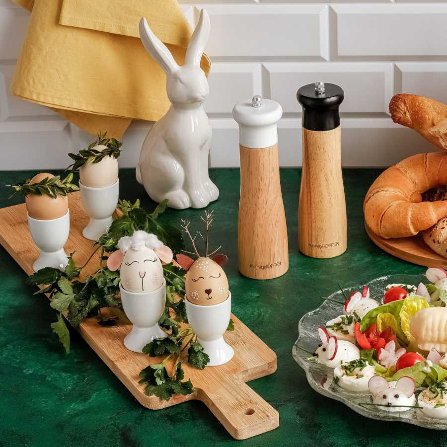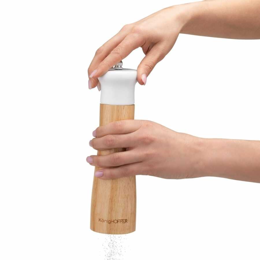Ruční mlýnky s bambusovým tělem a keramickými žarnami v bílém a černém provedení pro přesné mletí soli a pepře. Ergonomický tvar a stabilní základna usnadňují dochucování jídel přímo v kuchyni.