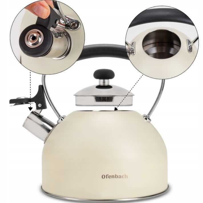 Elegantní konvice Ofenbach z nejnovější designové řady spojuje moderní vzhled s dokonalou funkčností. Vyrobena z vysoce kvalitní nerezové oceli s pevně zabudovanou píšťalkou a bakelitovou rukojetí je ideálním pomocníkem do každé kuchyně. Má funkční a nezahřívající se bakelitový držák který se bude stabilně držet v ruce.
