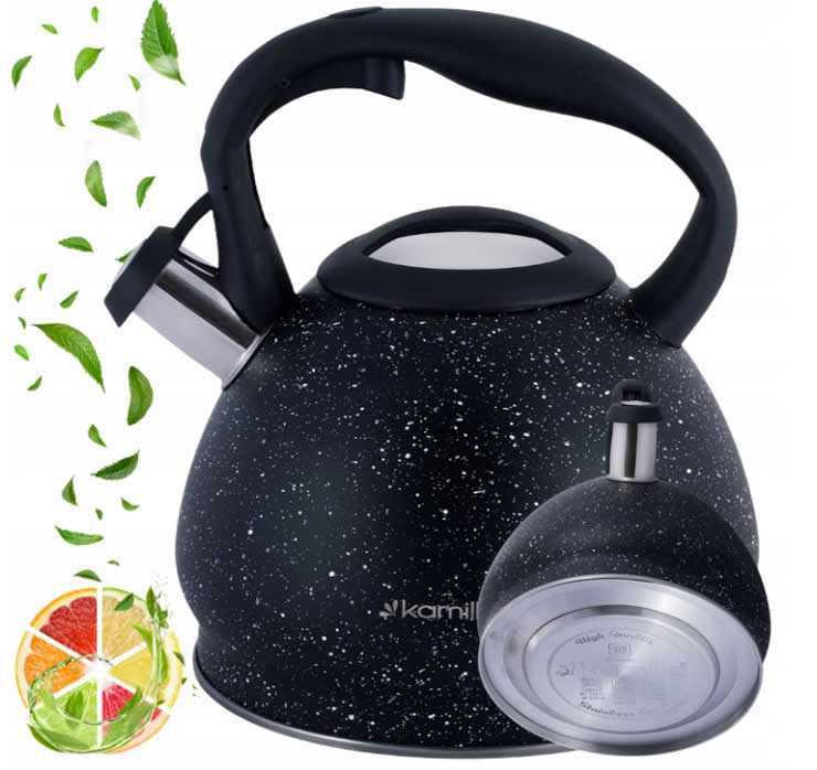 Elegantní konvice KAMILLE z nerezové oceli s objemem 2,7 litrů spojuje eleganci a funkčnost. Vyrobena z vysoce kvalitní nerezové oceli s pevně zabudovanou píšťalkou a bakelitovou rukojetí je ideálním pomocníkem do každé kuchyně. Má funkční a nezahřívající se bakelitový držák který se bude stabilně držet v ruce. Její mramorová barva přináší do každé kuchyně nádech modernosti a zároveň dokonale ladí s tradičními interiéry. Díky velké kapacitě je konvice ideální do domácnosti kde se často podává čaj ,nebo káva pro rodinu a přátele.