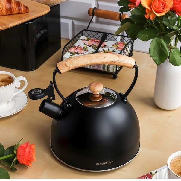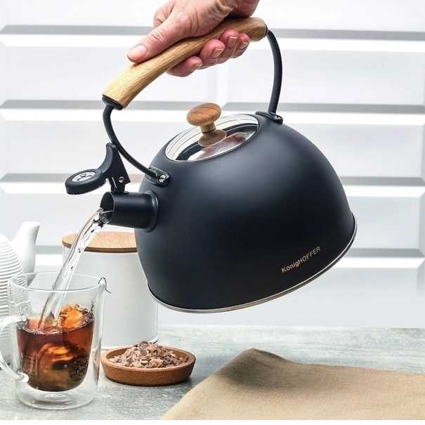 Naklápěný zvonek vždy včas upozorní, že voda se už vaří. Nepopálíte se při jeho otevírání a zároveň nezletí, pokud voda vaří příliš dlouho. Konvici můžete použít na jakémkoli sporáku, včetně indukce.