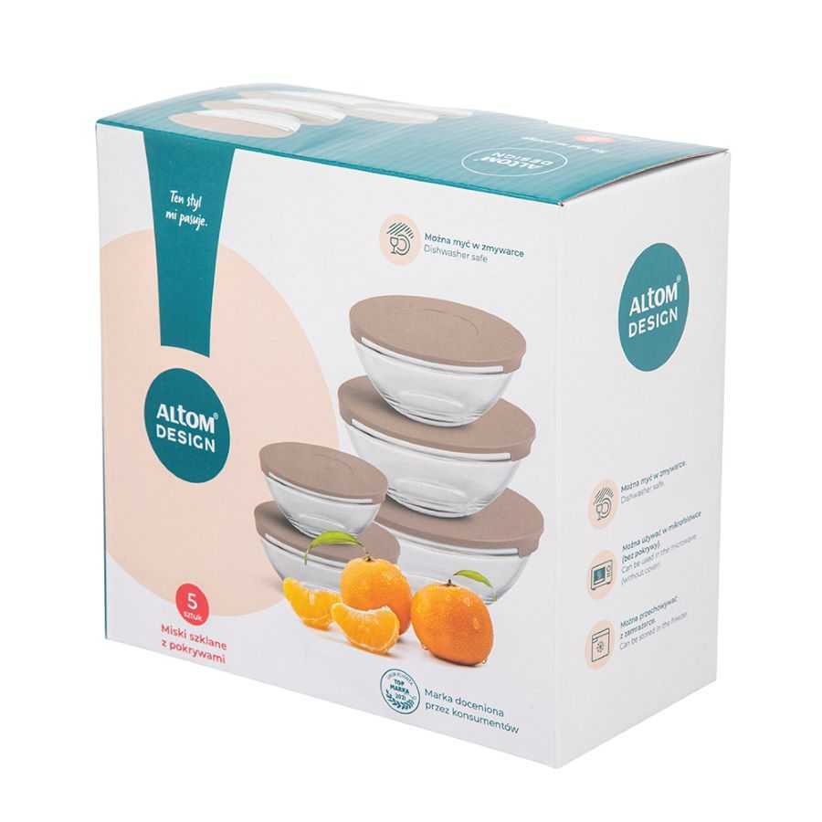 Skleněné misky 5ks každá se samostatným víkem jsou ideální pro skladování potravin. Parametry sady skleněných dóz 1 x miska průměr 9 cm, 150 ml 1 x mísa průměr 10,5 cm, 200 ml 1 x mísa průměr 13 cm, 350 ml 1 x mísa průměr 14 cm, 500 ml 1 x mísa průměr 17 cm, 900 ml Proč koupit dózy skleněné s víkem Skleněné salátové misky jsou jedním z nejzákladnějších kuchyňských potřeb. Skleněná mísa má mnoho univerzálních použití - pro servírování, podávání, přípravu i skladování jídel. Sada 5 skleněných misek s víkem se hodí do každé domácnosti.