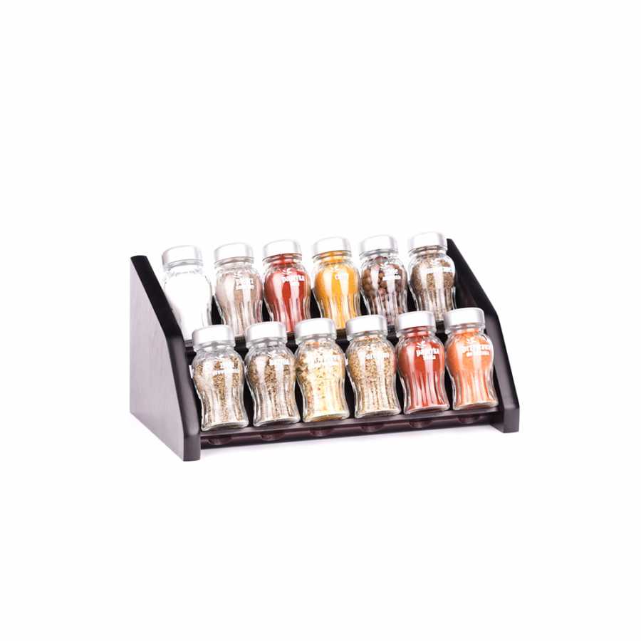 Praktická dřevěná police s 12 druhy čerstvého pepře vždy po ruce. Souprava je vyrobena z nejkvalitnějších materiálů. Osvědčený produkt prodávaný mnoho let. Trojitá vrstva laku na vodní bázi chrání produkt před jakýmkoli poškozením. Užitečné a snadné použití. Šikovné skleněné kořenky s názvem koření urychlují a usnadňují práci při jejich používání. Poličku lze zavěsit na zeď nebo ji umístit libovolně na kuchyňský pult. K dispozici je v různých odstínech dřeva, což umožňuje snadno vybrat produkt a přizpůsobit na míru podle interiéru kuchyně.