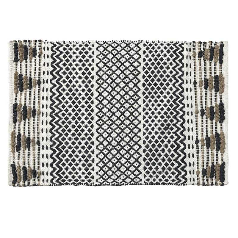 Koberec FIBRA je jedinečnou kombinací černé, bílé a jemných akcentů v odstínech hnědé, které mu dodávají přirozený, ale zároveň elegantní charakter. Geometrické vzory a trojrozměrná textura dělají z tohoto koberce nejen praktický, ale také dekorativní prvek interiéru. Je ideální do obývacích pokojů, ložnic, chodeb nebo koupelen, kde dodá teplo a moderní styl. Je vyroben z odolných materiálů, takže se snadno udržuje – lze jej prát v pračce na šetrném programu, díky čemuž je mimořádně praktickou volbou pro každodenní použití. Tento koberec kombinuje funkčnost s módním designem.