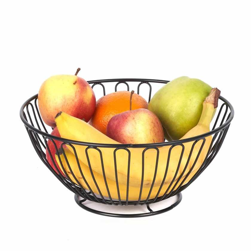 Košík drátěný černý na ovoce je praktickým řešením uložení citrusů, jablek, hrušiek a mnoho dalšího různorodého ovoce. Černé drátěné tyčky jsou velmi odolné. Vypadají elegantně a stylově, takže zároveň košík vytvoří designový prvek kuchyně nebo jídelny.