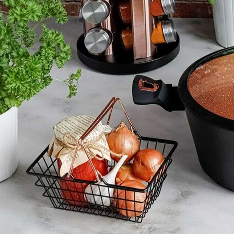 Košík drátěný Harper Starke Atracttive line kombinace černého a měděného zlato-růžového příslušenství, který vypadá velmi atraktivní. Košík přinese do interiéru jedinečné uspořádání.