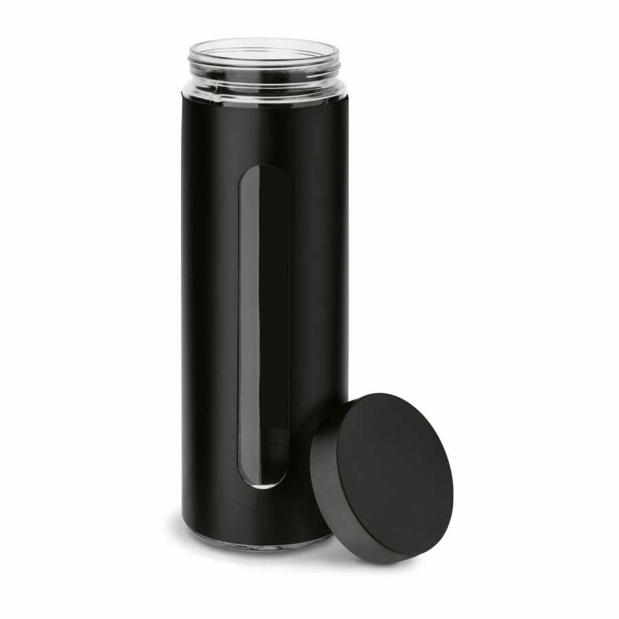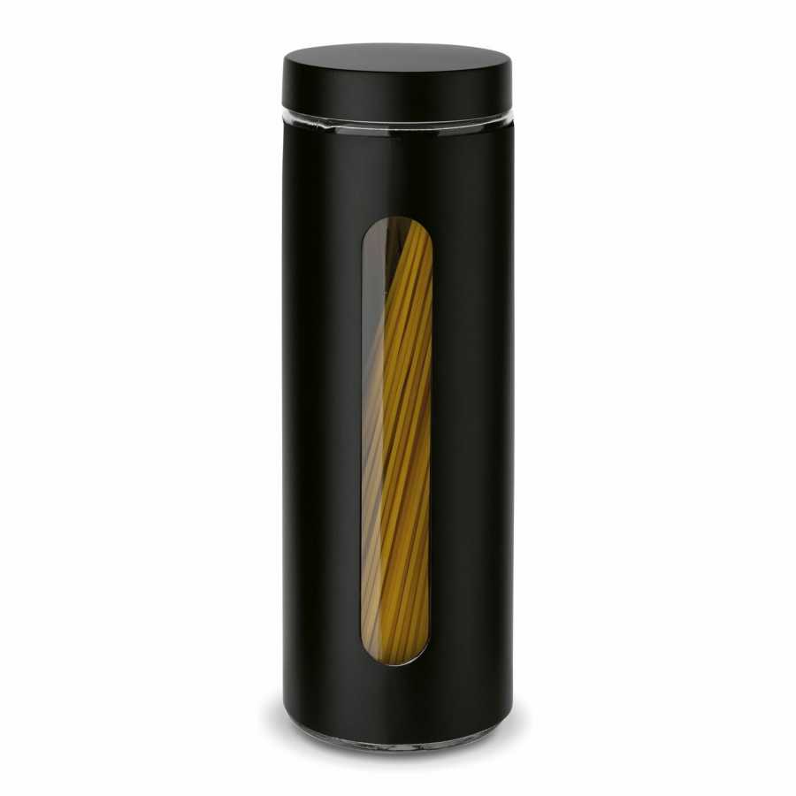 Dekorativní nádoba 1,9l nabízí hygienu a estetiku. Těžká konstrukce z hrubého skla sodově-vápenatého s kovovým uzávěrem chrání před znečištěním, vlhkostí a pachy. Vždy víte, co je uvnitř a kolik toho je – bez etiket. Máte kontrolu, pohodlí a černou nádobu, která zkrášlí poličku v kuchyni. Ocelový obal s práškovou úpravou zajišťuje pevnost.