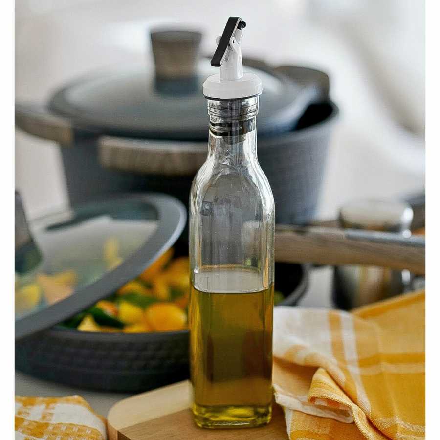 Skleněná láhev na ocet a olej o objemu 250 ml má jednoduchý čtvercový design, který se elegantně prezentuje na stole. Esteticky podáte v ní tekutá dochucovadla. Korek se systémem klik a těsněním chrání obsah před větráním, díky čemuž ocet, omáčky a olej si déle uchovají své jedinečné aroma a chuť. Vyhotovení z pevného skla a plastu jí zajišťuje dlouhou životnost a odolnost v domácnosti.