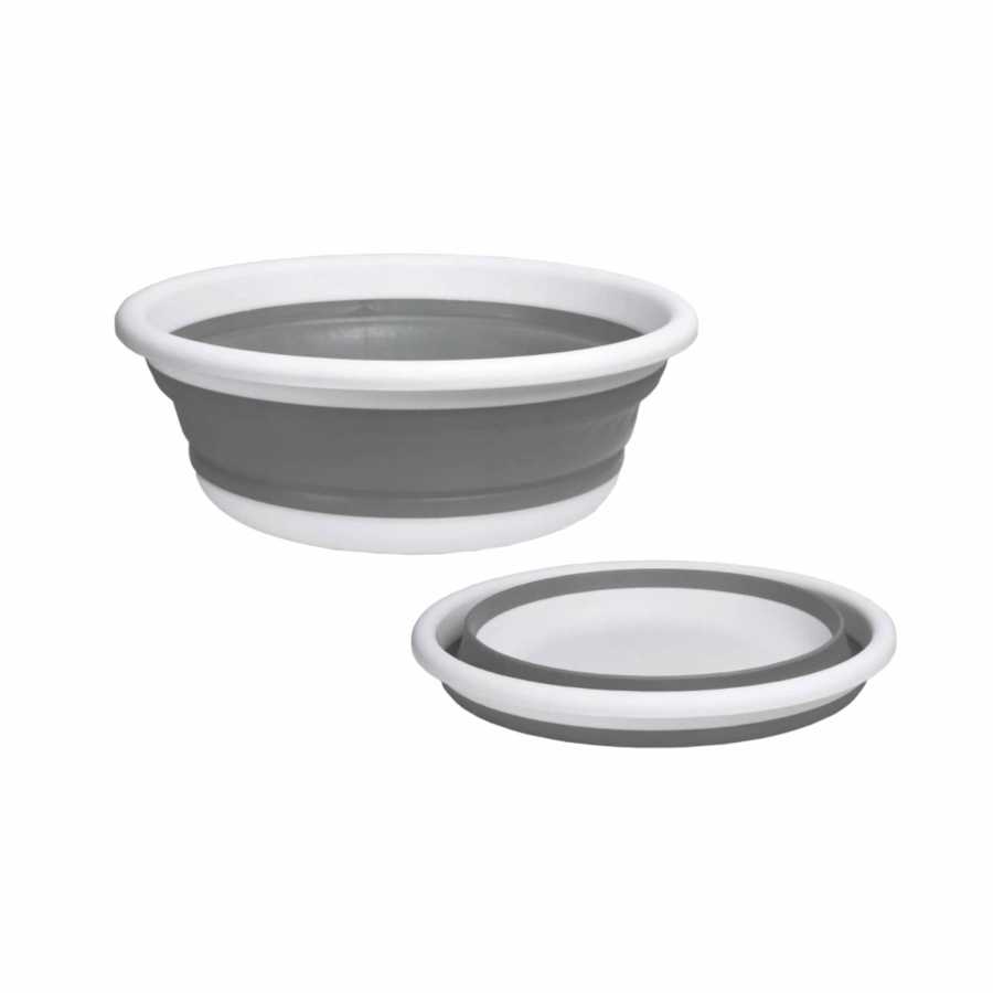 Praktická skládací miska kulatého tvaru s víkem pro univerzální využití v domácnosti.