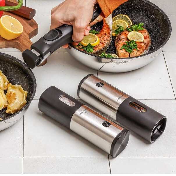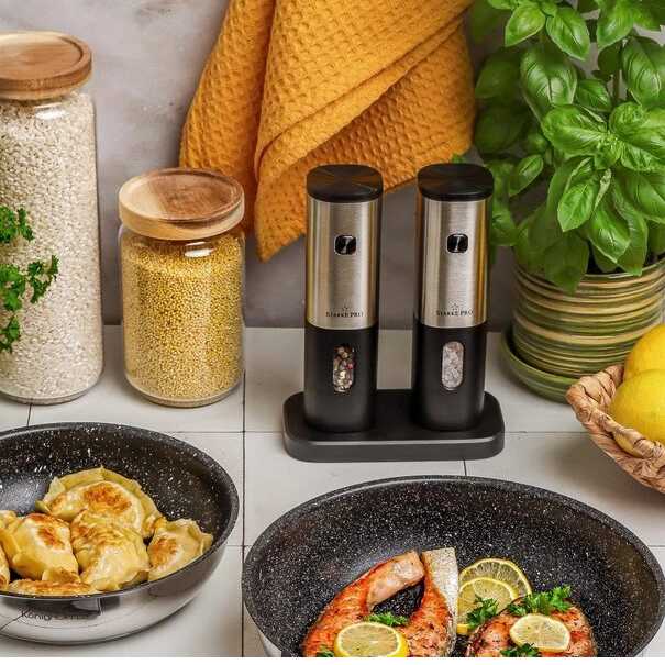 Mlýnky plní svůj úkol přesně a efektivně díky keramickým mlecím kamenům. Nastavíte si v nich hrubost mletí jednoduše. Ke spuštění postačuje jedno tlačítko, takže můžete jídlo dochucovat jednou rukou.