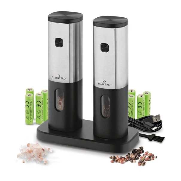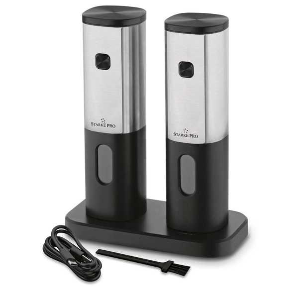 • Dva mlýnky v sadě spolu s nabíjecí základnou a USB-C kabelem