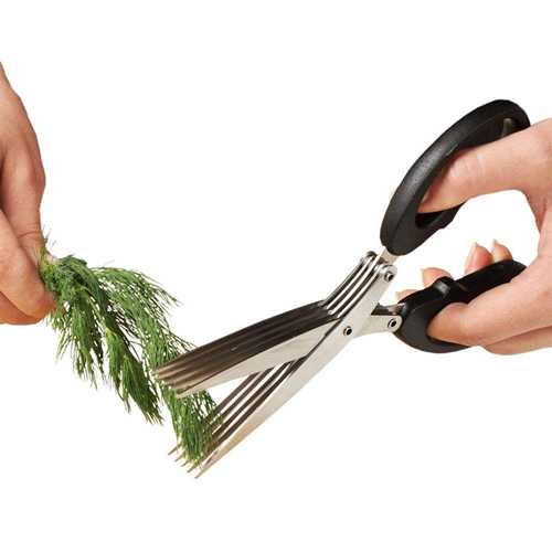 Kuchyňské nůžky s pěti čepelemi na bylinky. Jsou vhodné ke krájení pažitky, zelené petrželky, máty,