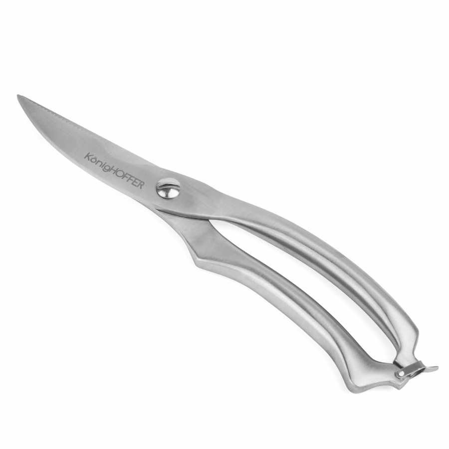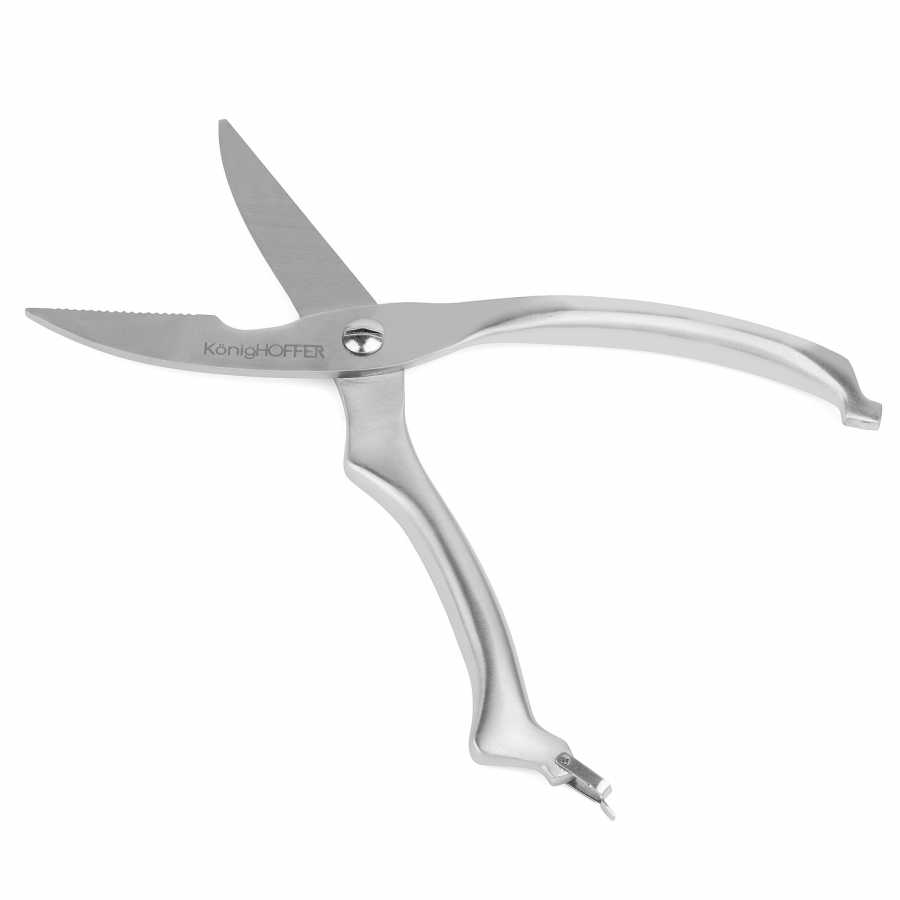 Nůžky na drůbež Konighoffer Arlo - nerezové nůžky, které mají tvar, profilované rukojeti a ostré čepele na efektivní, pohodlné a rychlé řezání drůbeže. Jsou vyrobeny z nerezavějící oceli, a proto se vyznačují vysokou odolností proti poškození a vlhkosti. Zámek na koncích rukojeti zajišťuje bezpečné uložení produktu.