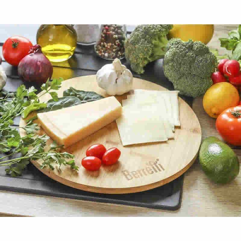 Estetická a pevná rotační bambusová deska Berretti je nepostradatelným prvkem kuchyně a jídelny. Ideální jako podnos na sýry, předkrmy, dorty, koláče, pizzu a kolečka. Díky otočné základně sáhne každý host bez problémů po svém oblíbeném kousku – bez posouvání celé desky!