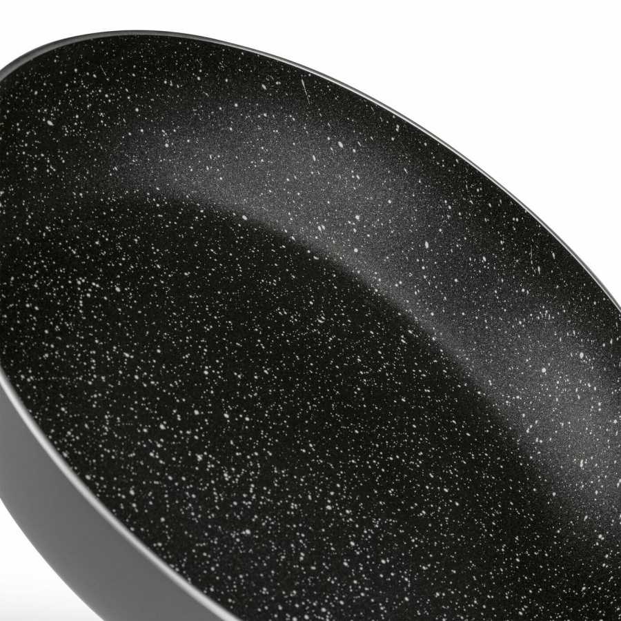 Univerzální pánev s mramorovou nepřilnavou povrchovou úpravou je ideální pro každodenní vaření v kuchyni. Umožní vám připravovat lehce stravitelná jídla s menším množstvím tuku, bez obav z připalování surovin. Hliníkové tělo pánve se rychle a rovnoměrně nahřívá, díky čemuž šetří čas i energii. Indukční dno zajišťuje použití na všech typech sporáků – indukčních, sklokeramických, plynových i elektrických. Pánev má bakelitovou rukojeť, která se zahřívá velmi pomalu a příjemně se drží v ruce.
