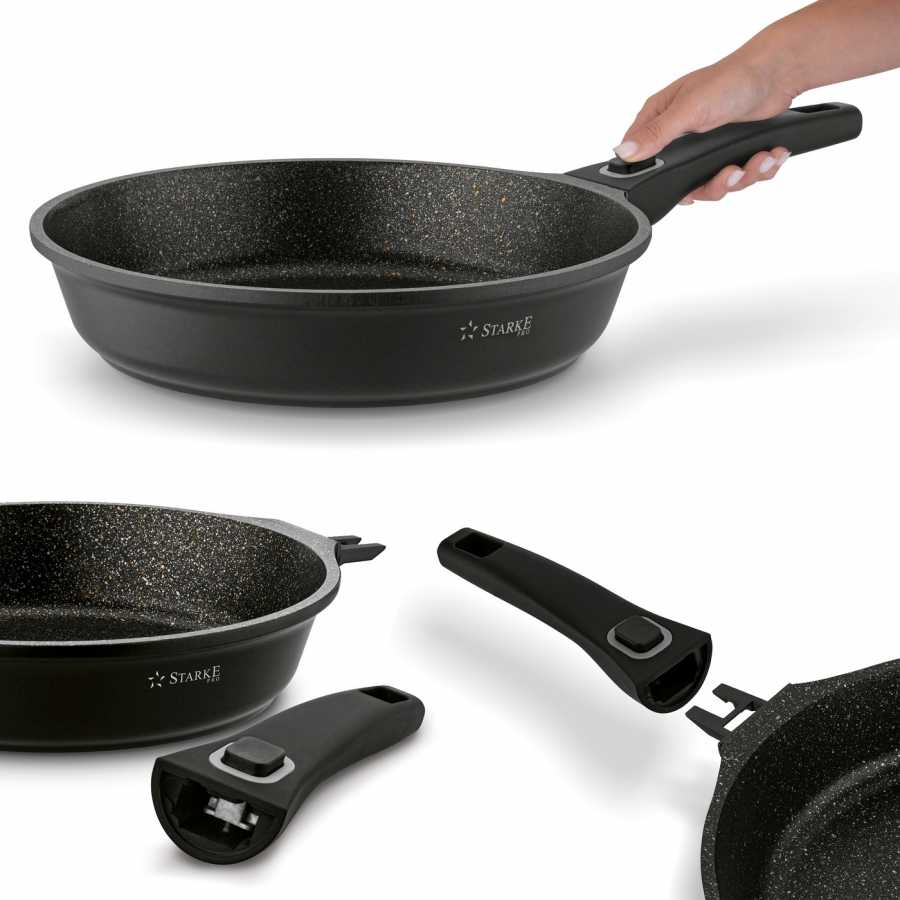 Pánev Roche granitová s odnímatelnou rukojetí KönigHOFFER s nepřilnavým povrchem Granit, šedé kamenné barvy s vyztuženými granitovými částicemi a odnímatelnou rukojetí.