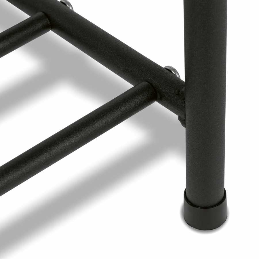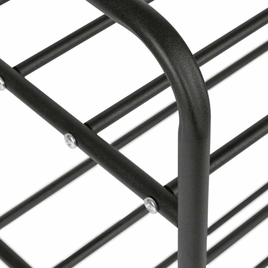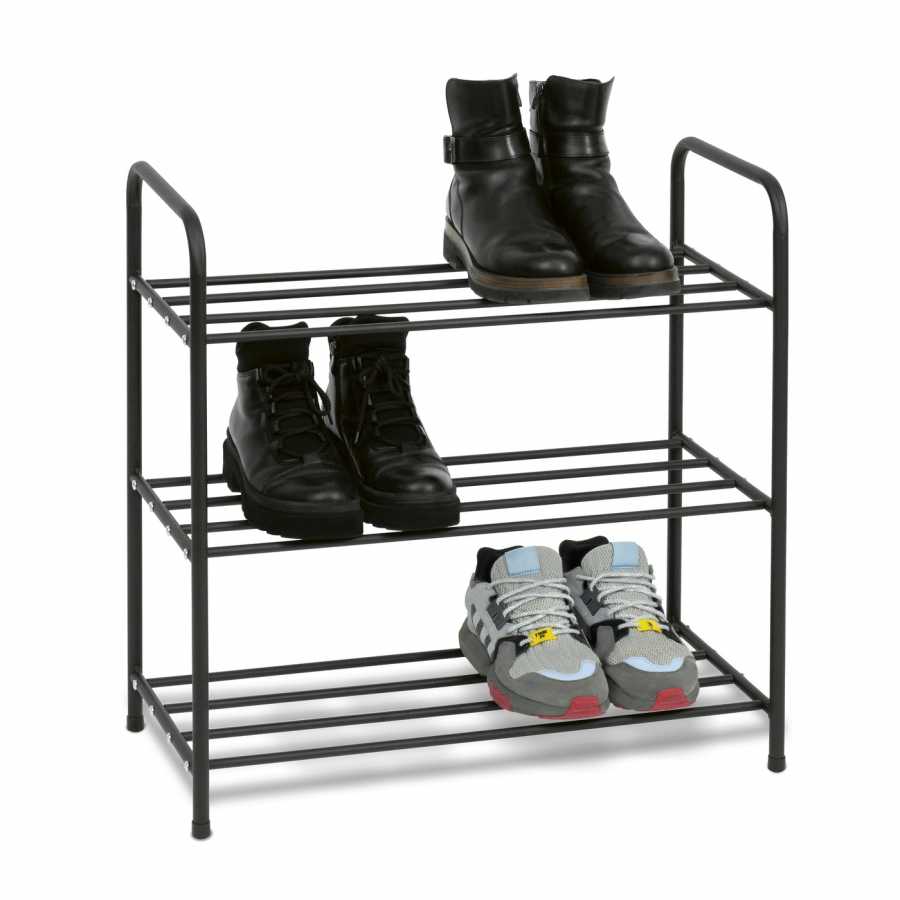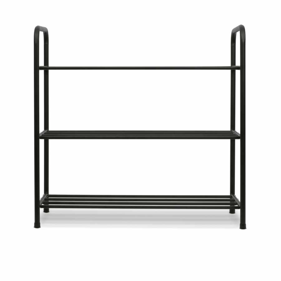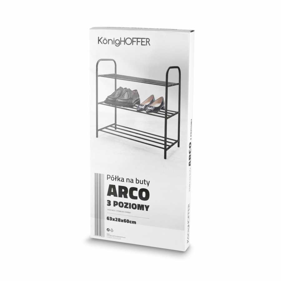 Tento regál potěší každého člena domácnosti! Zajistí lepší organizaci obuvi v předsíni, nebo jej můžete vložit do skříně či šatníku. Ve vašem domácím prostoru zavládne pořádek. Tento praktický třípatrový botník jednoduše poskládáte a upevníte. Po složení stojí pevně a stabilně a snadnou manipulací jej můžete přesunout na jiné místo. Černá kovová police na obuv Konighoffer Arco je pevná a odolná. Vyrobená je z práškově lakované oceli, která dlouhodobě udržuje estetický vzhled a bezpečně uchovává vaše boty.