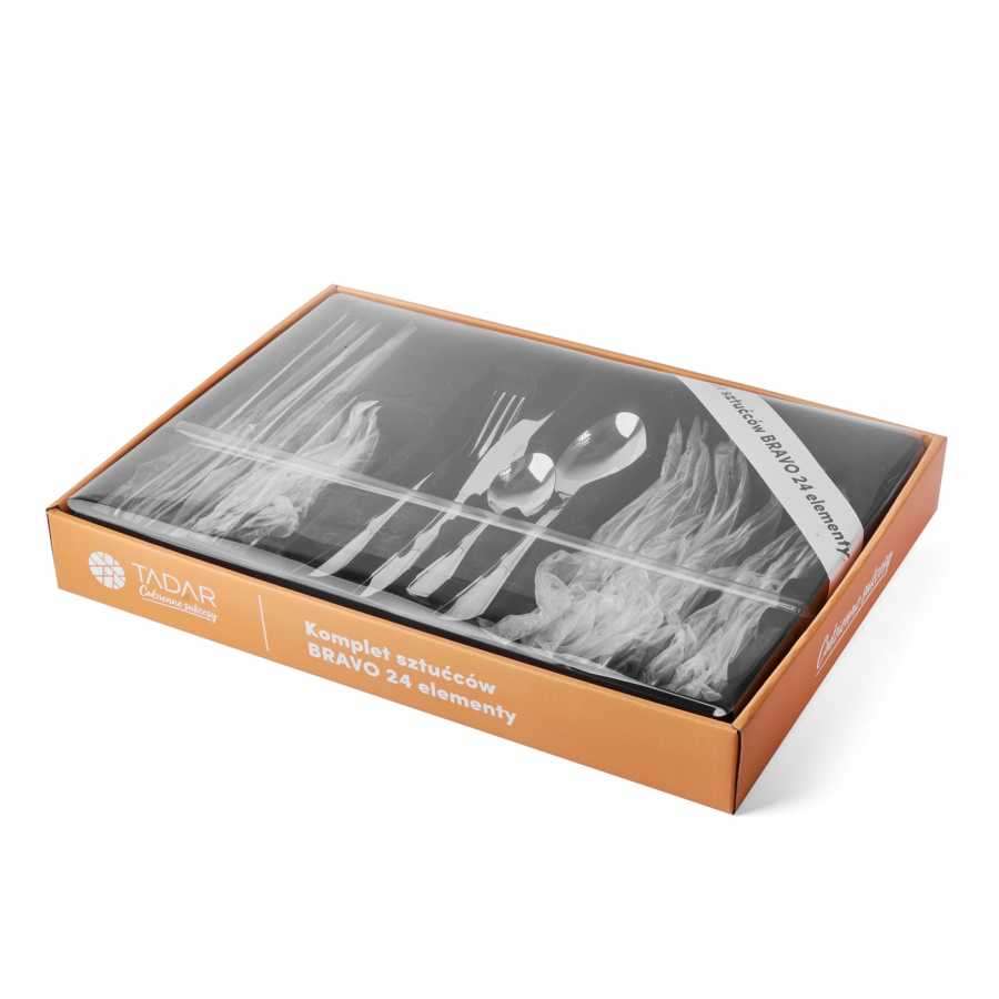 Sada příborů Bravo je vyrobena z nerezavějící oceli sestává z 24 prvků - obsahuje polévkové lžíce, čajové lžičky, vidličky a nože. Lesklá povrchová úprava příboru Bravo jemně zdůrazňuje jejich jednoduchý minimalistický design.