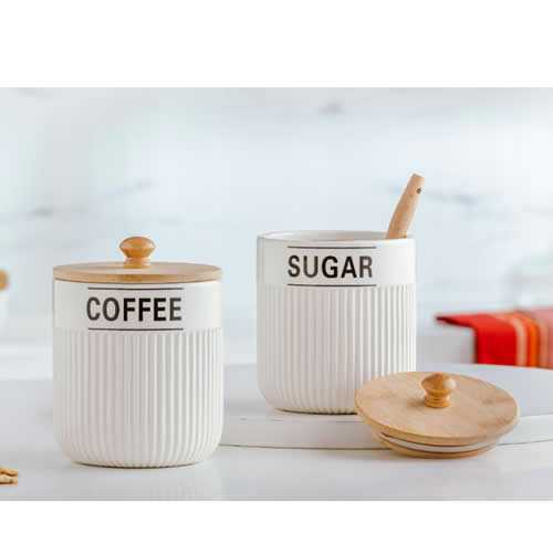 Tato sada 850 ml porcelánových nádob „Terrestrial“ od značky NAVA, určená pro skladování kávy a cukru, nabízí moderní design a odolnost. Těsně přiléhající víčko udrží produkty déle čerstvé a jejich stylový design se perfektně hodí do každé kuchyně. Mají bambusová víčka.