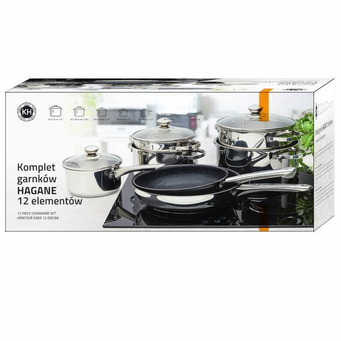 Sada hrnců a pánví Könighoffer Hagane obsahuje 5 hrnců s poklicí a dvě pánve. Hrnce jsou vyrobeny z vysoce kvalitní nerezové oceli a uvnitř mají litrovou stupnici. Pánve s ocelovými rukojeťmi vybavené uvnitř nepřilnavou vrstvou v černé barvě, aby se mohli smažit zdravější jídla jen s trochou tuku. Hrnce a pánve s lesklým povrchem jsou ideální na dárek.