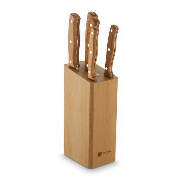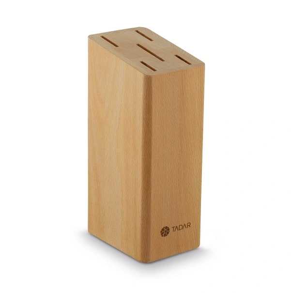 Výobek je vyroben výhradně z ekologického bukového dřeva. Stojan je navíc impregnován pro bezpečné používání v kuchyni. V tomto stojanu na nože můžete hygienicky uskladnit jakoukoli kuchyňskou čepel. Nože uložené ve stojanu ze série Tadar Shape budou dobře chráněny před rychlým otupěním. Můžete jej také použít k vytvoření ucelené a stylové sady nožů ze stejné kolekce, například jako praktický dárek pro někoho.