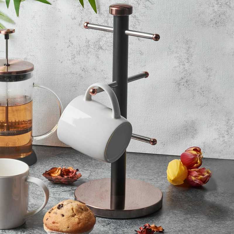 Stojan na šálky Harper Starke ze série Attractive line stojan na 6ks šálků Harper svojí černě a měděně zlato-růžovou kombinací působí velmi elegantně a decentně. Stává se tak nepřehlédnutelným dekorativním doplňkem v domácnosti a zároveň účelně slouží k efektivnímu uložení šálků.