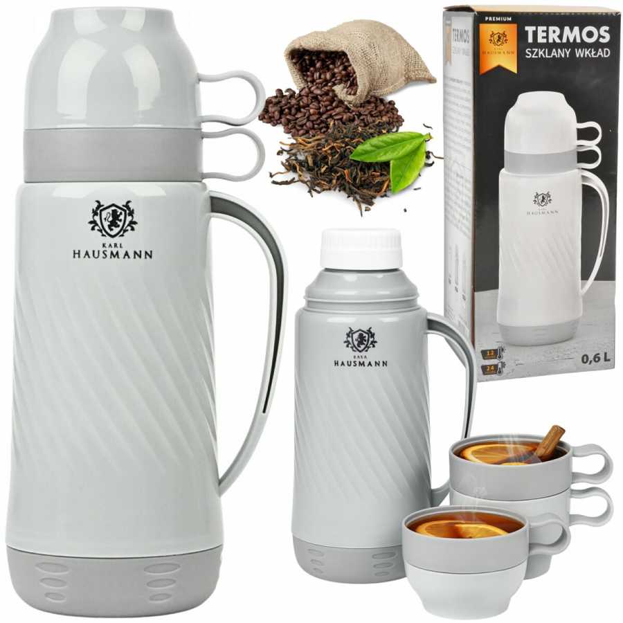 Termoska 0,6 l se skleněnou vložkou a 2 šálky