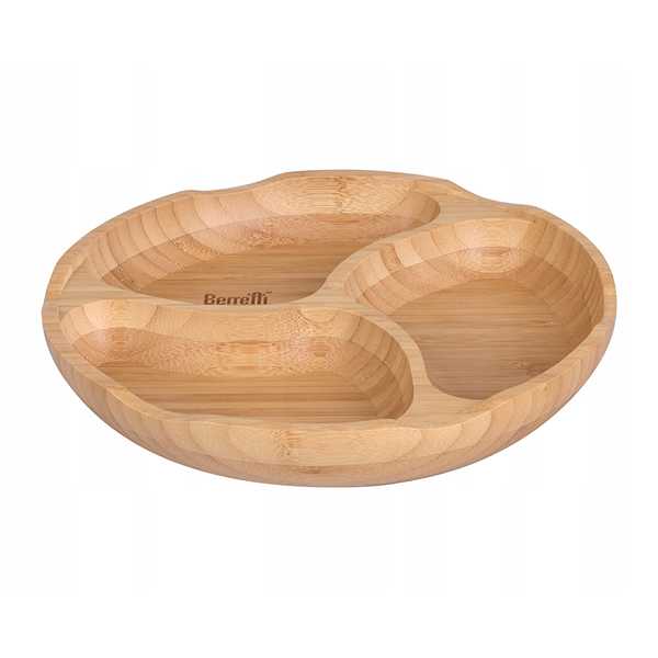 Praktické rozdělení mísy na tři sekce umožňuje pohodlné oddělení různých druhů občerstvení, což usnadňuje jejich degustaci a zároveň vytváří vizuálně přitažlivé prostírání.