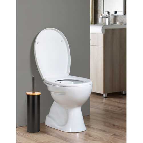 Spolehlivý moderní set WC kefy Kamille z vysoce kvalitní nerezové oceli s černým lakem bambusového dřeva a plastu udržuje toaletu dokonale čistou. Kombinuje styl funkčnost a dlouhou životnost pro domácnosti i profesionální prostory.